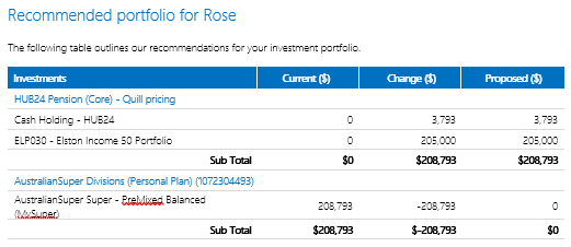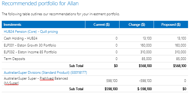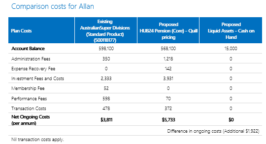 The first is a one-off advice fee of $4,235 which covers the research, formulation and implementation of this advice.
